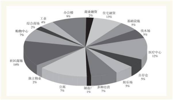 REITs的房地產(chǎn)類型除常見的商場、購物中心、辦公樓、住宅公寓以外,還包括醫(yī)療、旅游娛樂、生產(chǎn)廠房等眾多物業(yè)類型。
